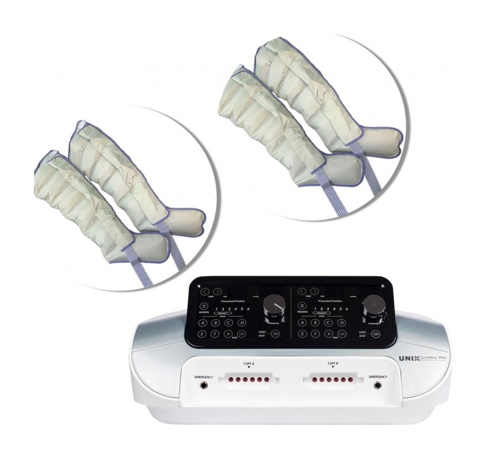 Комплект Unix Lympha Pro 4 (Юникс Лимфа Про 4) с манжетами для ног, руки, талии — профессиональный 6-и канальный аппарат прессотерапии не имеющий аналогов.